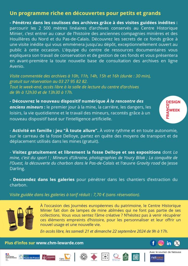 – Chaque année, le Centre Historique Minier propose une visite spéciale à l’occasion des Journées européennes du patrimoine.