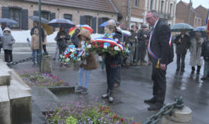 La lecture du message de Madame Geneviève Darrieussecq, secrétaire d’état auprès de la ministre des armées par Madame Jeanne-Marie Delmaire, adjointe au maire et la remise de gerbes aux deux monuments aux morts de la commune ont précédé les interventions de Monsieur Denis Michalak, maire et de Monsieur Alain Bruneel, député de la circonscription qui a honoré de sa présence cette cérémonie.
