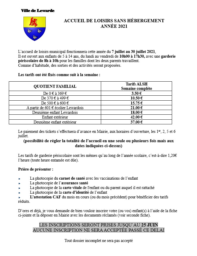 Accueil de Loisirs Sans Hébergement – inscriptions