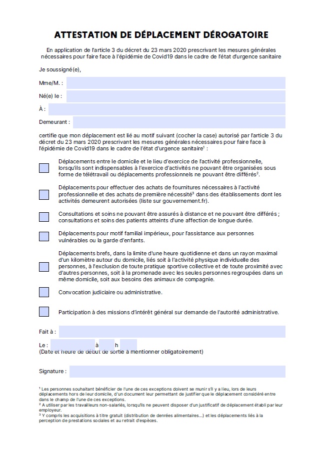 Générateur d’attestation en ligne : https://media.interieur.gouv.fr/deplacement-covid-19/