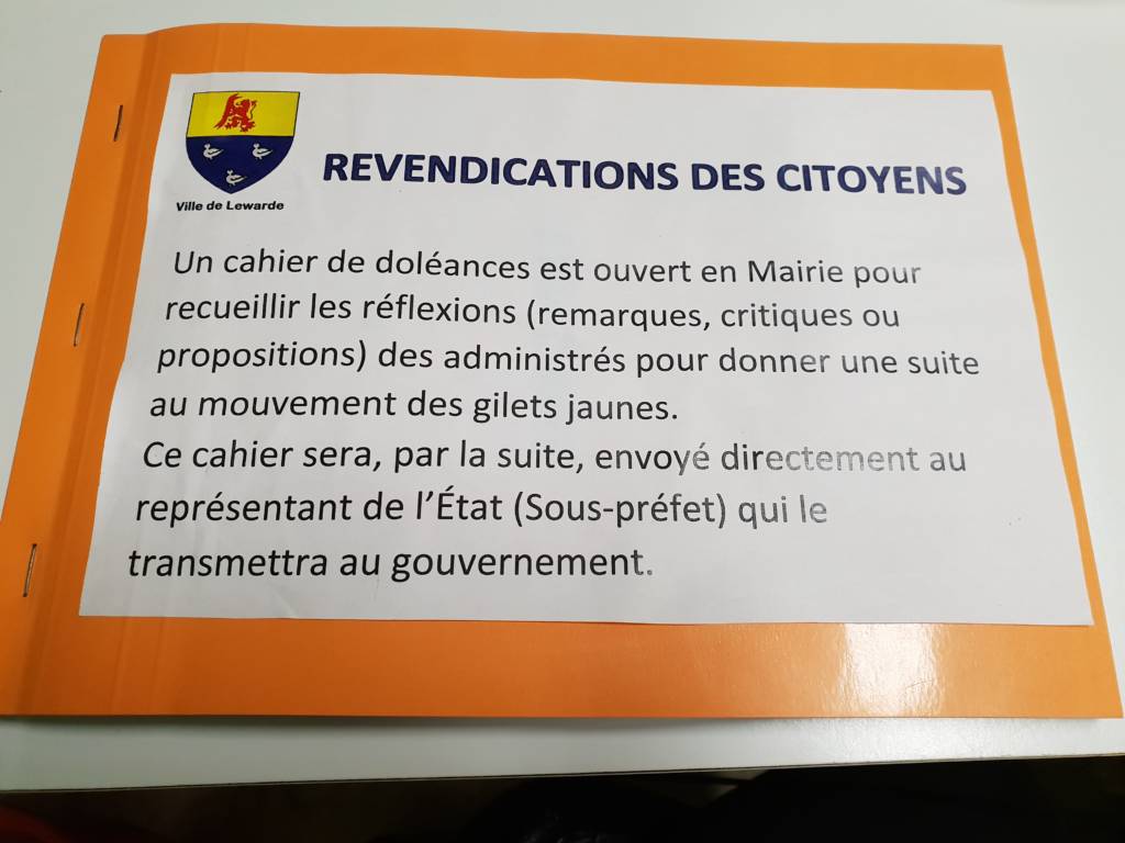 Ce cahier est ouvert pour recueillir les réflexions (remarques, critiques ou propositions) des administrés.