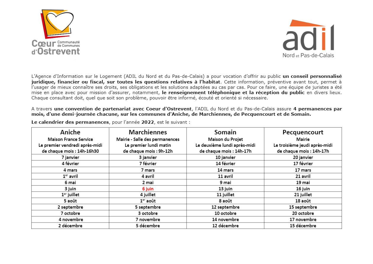 AccueilActualité de LewardeVie du villageCalendrier permanence habitat durable et Adil...