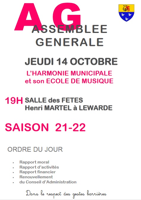 « Tous les Évènements Cet évènement est passé. Assemblée Générale de l’Harmonie Municipale 14 octobre 2021 @ 19:00 - 20:30 « Marché aux fleurs Marché aux fleurs » Ajouter au calendrier Google Agenda iCalendar Outlook 365 Outlook Live Détails Date : 14 octobre 2021 Heure : 19:00 - 20:30 Organisateur Harmonie Municipale Lieu Salle des fêtes Henri Martel rue louis aragon Lewarde, 59287 France + Google Map