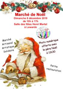 L’Amicale laïque lewardoise organise son traditionnel marché de Noël le dimanche 8 Décembre 2019 de 10 h à 17 h, salle des fêtes H. Martel de Lewarde.