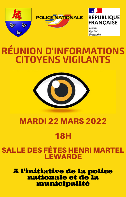 La municipalité de Lewarde propose à la population l’adhésion éventuelle au dispositif : « citoyens vigilants ».