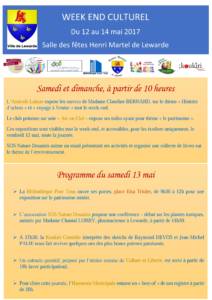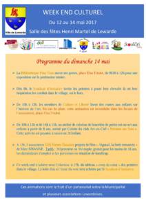« Tous les Évènements Cet évènement est passé. Week-end Culturel 13 mai 2017 @ 10:00 - 14 mai 2017 @ 17:00 Free « Le jeu des 1000 euros Fête de la musique » Ajouter au calendrier Google Agenda iCalendar Outlook 365 Outlook Live Détails Début : 13 mai 2017 @ 10:00 Fin : 14 mai 2017 @ 17:00 Prix : Free Organisateur Mairie de Lewarde Lieu Salle des fêtes Henri Martel rue louis aragon Lewarde, 59287 France + Google Map