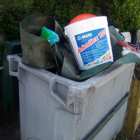Une poubelle déposée à l’entrée du cimetière, rue de l’Egalité et destinée à recevoir les déchets végétaux du dit-lieu est investi par un ou des citoyen(ne)s qui y déposent régulièrement des gravats.