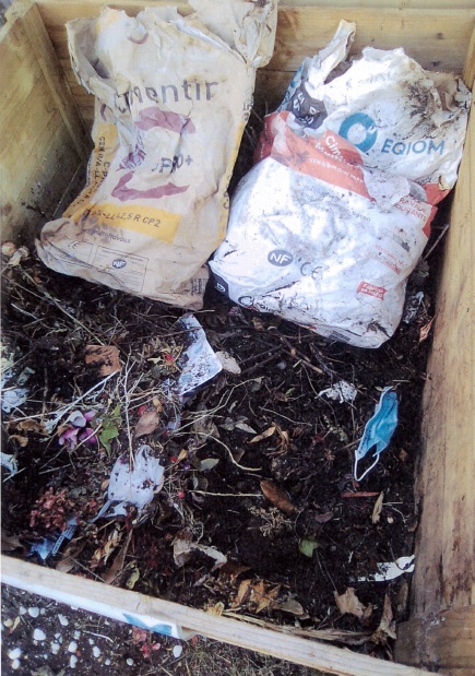 Certaines personnes peu soucieuses des efforts consentis pour recycler les déchets verts déversent leur détritus dans les conteneurs. Désolant !