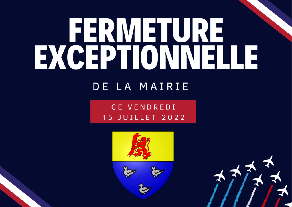 Fermeture exceptionnel de la mairie ce vendredi 15 Juillet