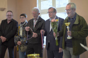 Pour services rendus aux vignerons, Monsieur Alain Bruneel, Député et Monsieur Denis Michalak, maire, ont été intronisés chevaliers du clos Saint Rémi par les membres de la Confrérie du Clos Saint Rémi. La cérémonie protocolaire musicale et animée par des prises de paroles amusantes, a été fort appréciée du public.