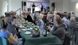 Christian Jouffroy à la guitare et au banjo, Salvatore Barbagallo à l’accordéon et Bettina, chanteuse  du groupe et professionnellement meneuse de revue ont enthousiasmé les convives qui, le temps du show, avaient tous 20 ans.