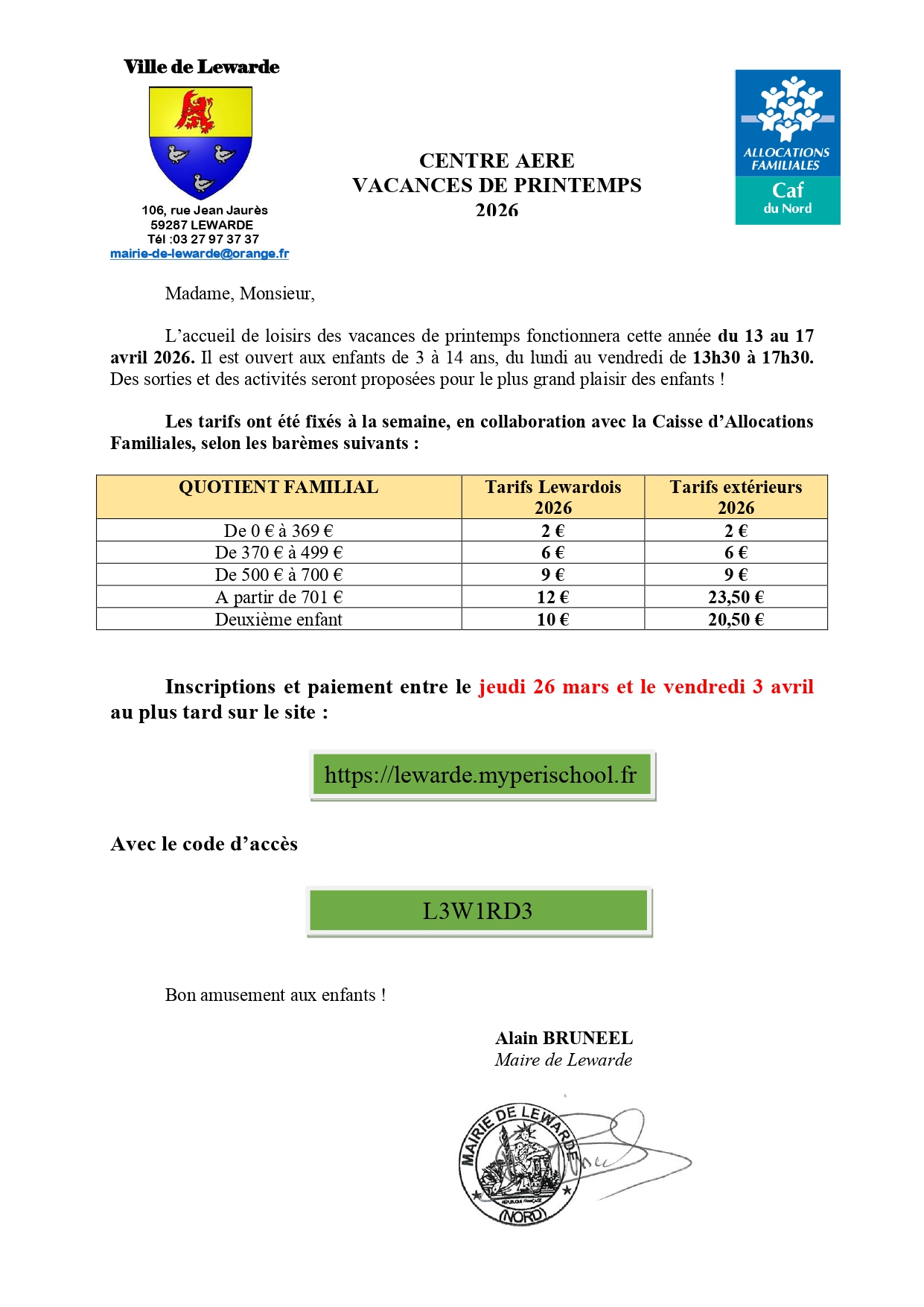 AccueilActualité de LewardeVie du villageInscriptions accueil de loisirs sans...
