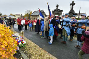 Avant le départ du cortège, comme en 1918, les cloches de l’église ont sonné 11 minutes. Un hommage aux Lewardois morts pour la France, suivi d’un dépôt de gerbes, a été rendu aux deux monuments aux morts.