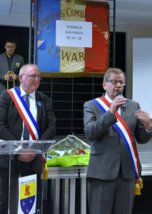 Dans la salle des fêtes Henri Martel, après que l’harmonie ait accueilli les participants au son de « la Madelon », Monsieur André Léger, adjoint au maire a lu le message du Président de la République avant le dépôt d’une gerbe au pied du drapeau de l’association lewardoise des combattants de la guerre 14-18 par les soins de Monsieur le député accompagné par Monsieur Denis Michalak, Maire, et Monsieur Plutot.