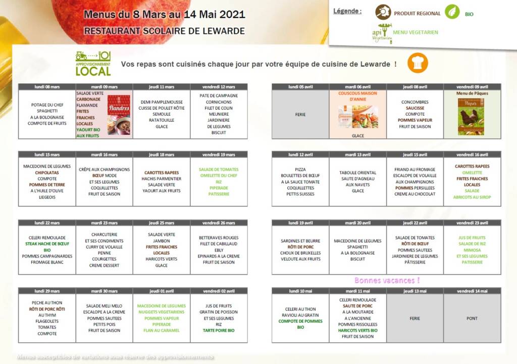 Menu de la cantine