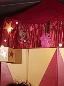 Le cirque est dans le castelet avec ses animaux savants, ses danseuses… mais aussi sur la scène avec ses clowns.