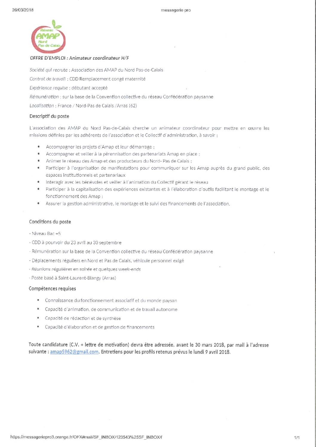 Offre d’emploi – Animateur...