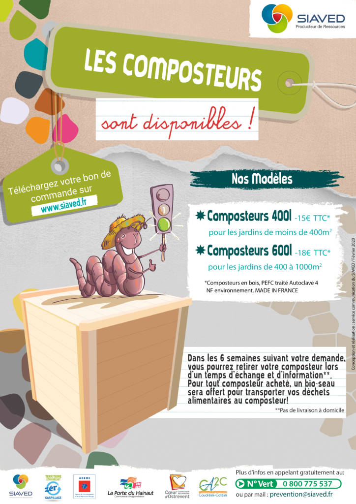 - Compléter et renvoyer le bon de commande ci-joint avec votre règlement (uniquement par chèque) au Service Sensibilisation et Prevention des Déchets du SIAVED, 5 route de Lourches, 59282 Douchy-les-Mines