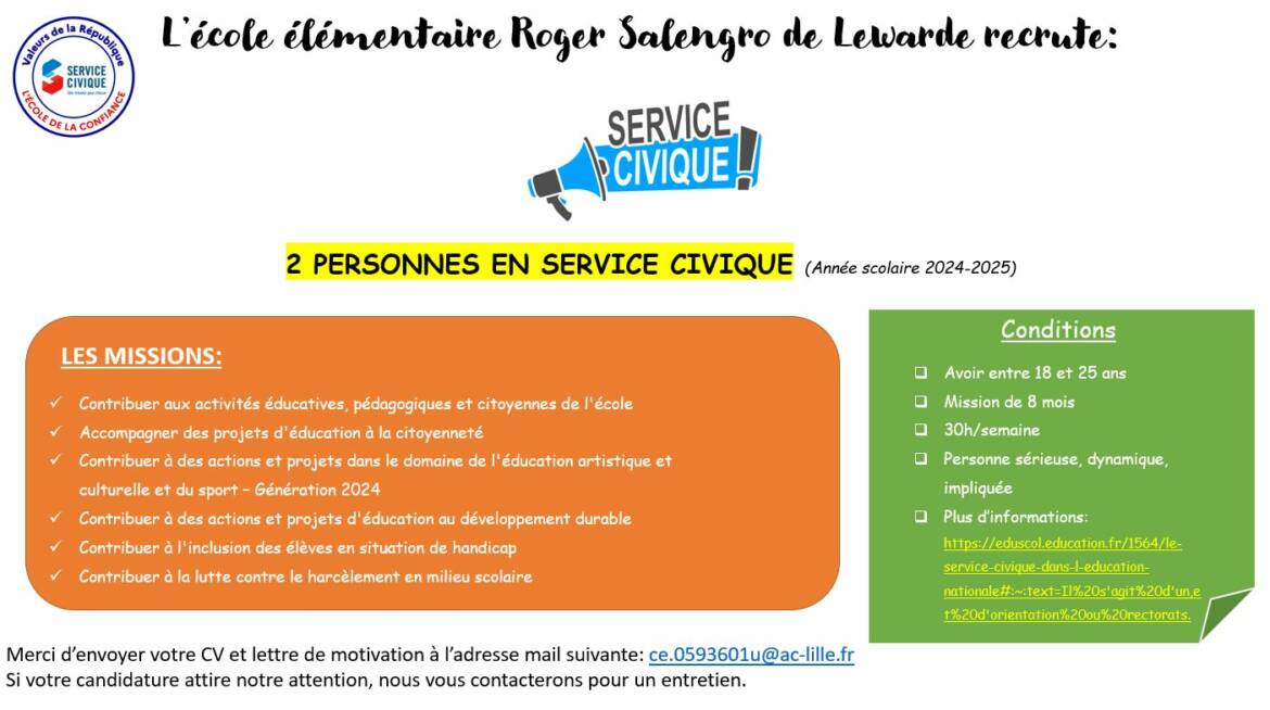 Recrutement contrat civique - école primaire