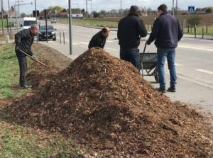 Récemment, ils ont étalé des copeaux de bois rue famille Dervaux. Cette pratique écologique permettra de maintenir l’humidité au sol afin d’éviter l’arrosage et la croissance des mauvaises herbes.