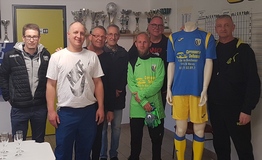 Monsieur Delbasse, responsable d’une entreprise de carrosserie à Masny a remis un jeu de maillot à l’équipe fanion.